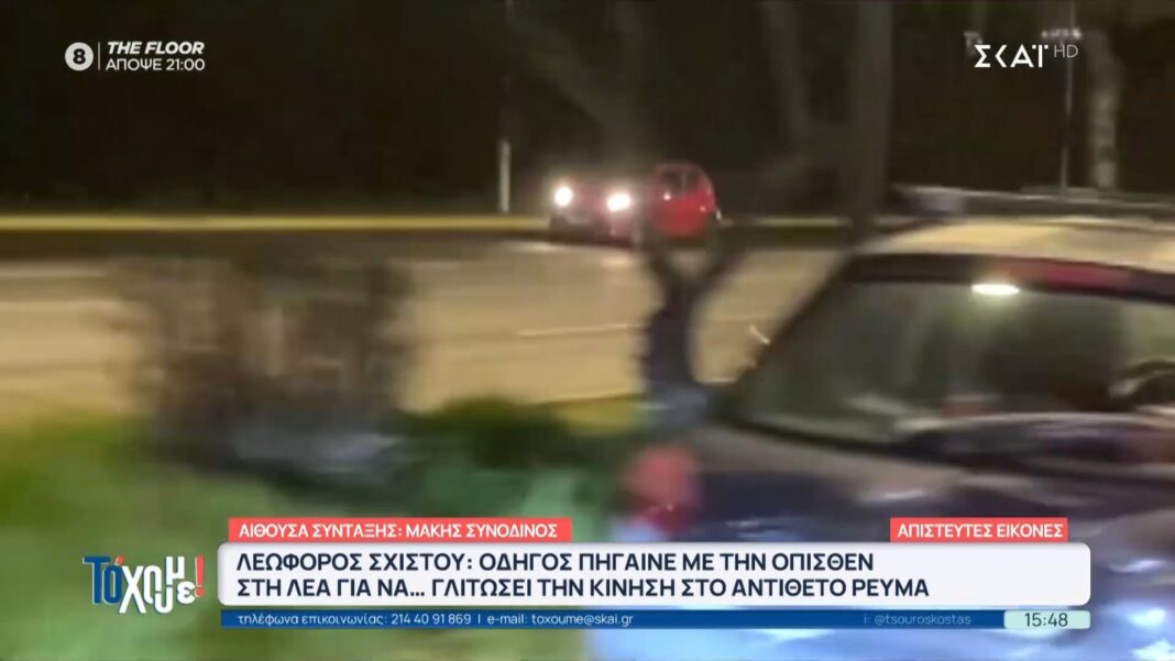 Οδηγός στη Λεωφόρο Σχιστού προκαλεί χάος οδηγώντας με την όπισθεν για να αποφύγει μποτιλιάρισμα, εγείροντας ερωτήματα για την οδική συμπεριφορά.