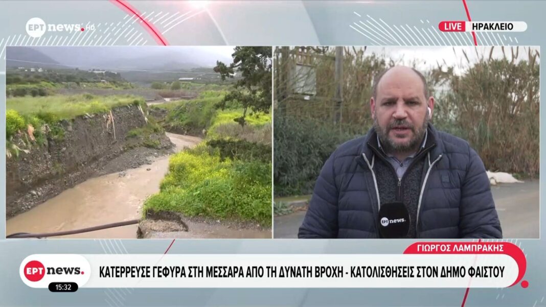Σημαντικές ζημιές προκλήθηκαν στη Μεσσαρά λόγω των ισχυρών βροχοπτώσεων, με αποτέλεσμα την κατάρρευση γέφυρας. Οι αρχές προειδοποιούν για τον κίνδυνο κατολισθήσεων, καθώς η κατάσταση παραμένει κρίσιμη στον δήμο Φαιστού.