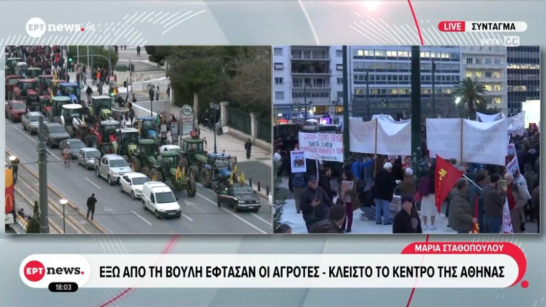 Έξω από τη Βουλή έφτασαν οι αγρότες – Κλειστό το κέντρο της Αθήνας