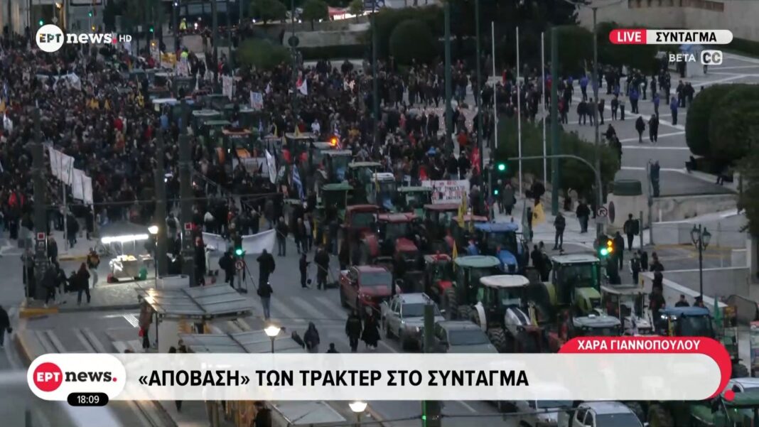 Αγρότες από διάφορες περιοχές της χώρας συγκεντρώθηκαν στο Σύνταγμα, προχωρώντας σε κινητοποιήσεις με τα τρακτέρ τους. Διαμαρτύρονται για την έλλειψη ικανοποίησης των αιτημάτων τους, που αφορούν οικονομικά και κοινωνικά ζητήματα που τους πλήττουν άμεσα.