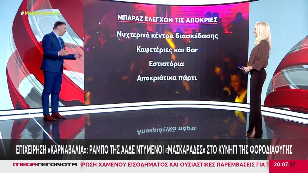 Μια ειδική επιχείρηση της ΑΑΔΕ έχει ξεκινήσει, με στόχο την καταπολέμηση της φοροδιαφυγής κατά τη διάρκεια της καρναβαλικής περιόδου. Οι ελεγκτές, ντυμένοι ως «μασκαράδες», περιφέρονται σε πολυσύχναστες περιοχές, ελέγχοντας τις επιχειρήσεις για πιθανές παραβάσεις.