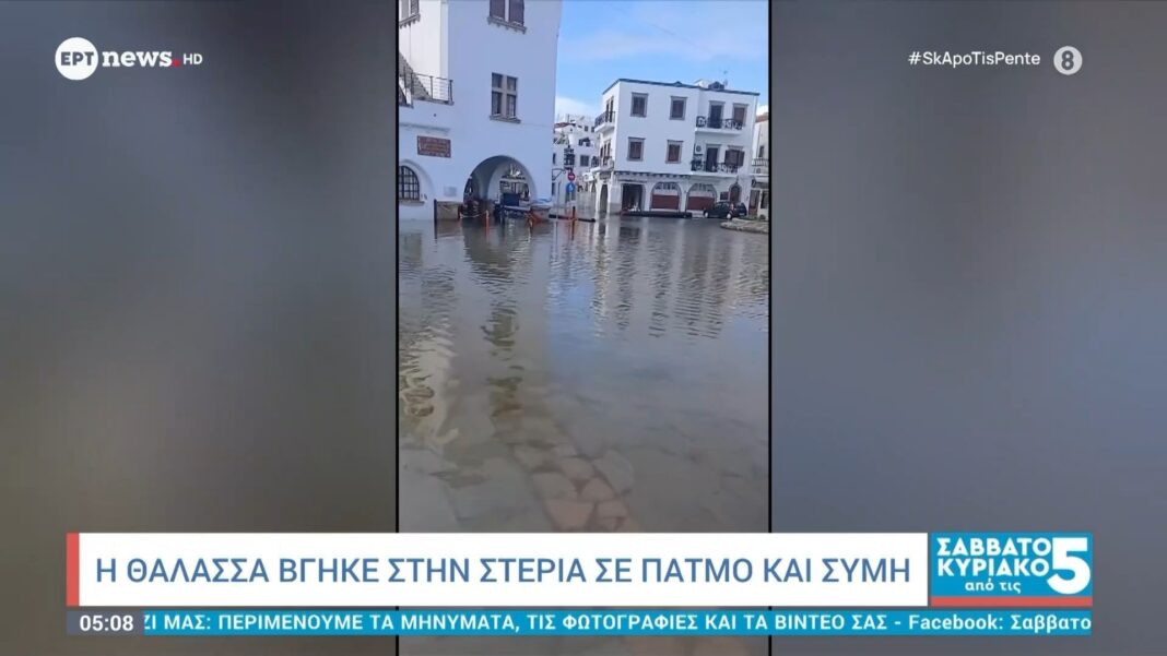 Η θάλασσα βγήκε στη στεριά σε Πάτμο και Σύμη