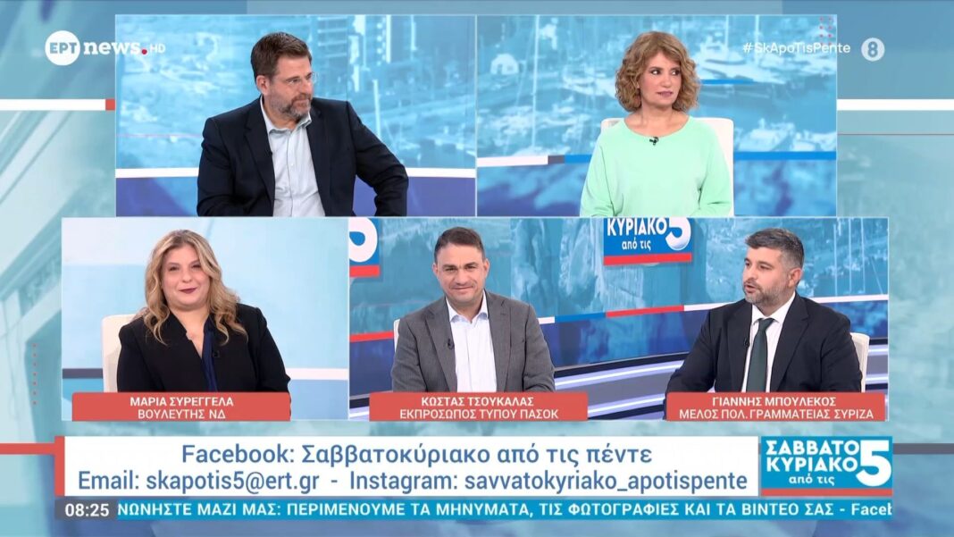 Μια ενδιαφέρουσα πολιτική συζήτηση πραγματοποιείται με τη συμμετοχή τριών σημαντικών προσώπων από τον πολιτικό χώρο. Η Μαρία Συρεγγέλα εκπροσωπεί τη Νέα Δημοκρατία, ο Κώστας Τσουκαλάς το ΠΑΣΟΚ και ο Γιάννης Μπουλέκος τον ΣΥΡΙΖΑ, αναλύοντας κρίσιμα ζητήματα της τρέχουσας πολιτικής επικαιρότητας.