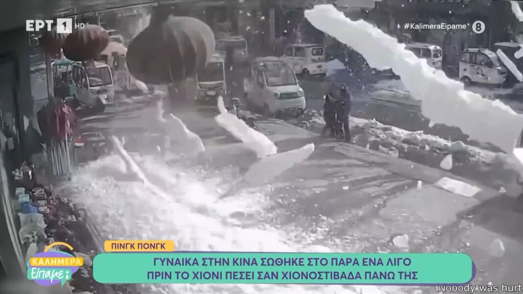 Γυναίκα στην Κίνα σώθηκε στο παρά ένα, λίγο πριν το χιόνι πέσει σαν χιονοστιβάδα πάνω της