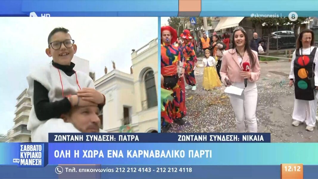 Παιδιά από σχολεία και συλλόγους βρίσκονται στον κεντρικό δρόμο της Πάτρας την Κυριακή, προσφέροντας χρώμα και χαρά στους παρευρισκόμενους.