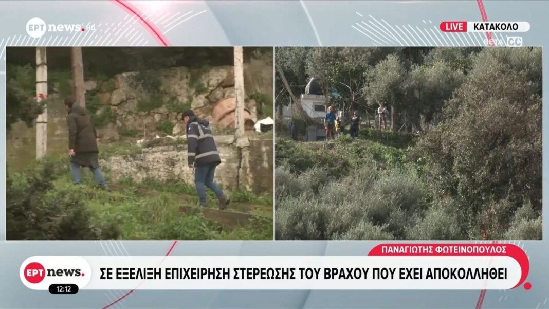 Κατάκολο: Σε εξέλιξη επιχείρηση στερέωσης του βράχου που έχει αποκολληθει