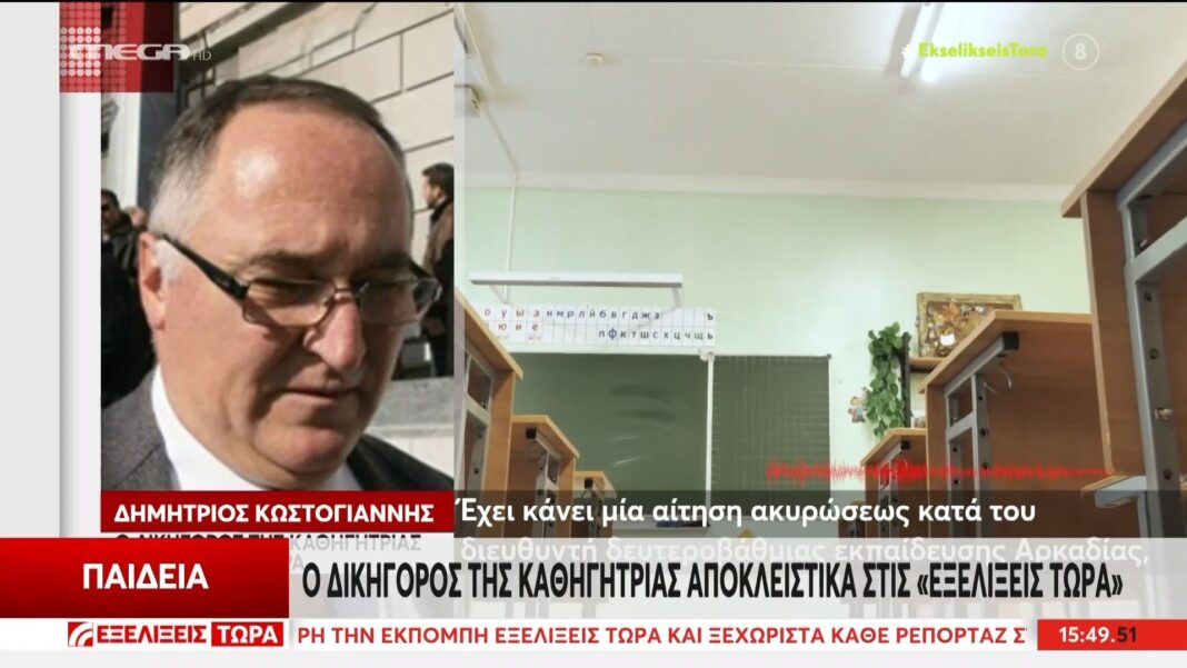 Ο δικηγόρος της καθηγήτριας, Δημήτριος Κωστογιάννης, τοποθετήθηκε σχετικά με την αίτηση ακύρωσης που κατέθεσε ο διευθυντής Δευτεροβάθμιας Εκπαίδευσης Αρκαδίας, η οποία προκαλεί αναστάτωση στο εκπαιδευτικό περιβάλλον. Στην εκπομπή «Εξελίξεις Τώρα», ανέφερε ότι οι ενέργειες αυτές συνδέονται άμεσα με τις πρόσφατες εξελίξεις στην υπόθεση της καθηγήτριας.