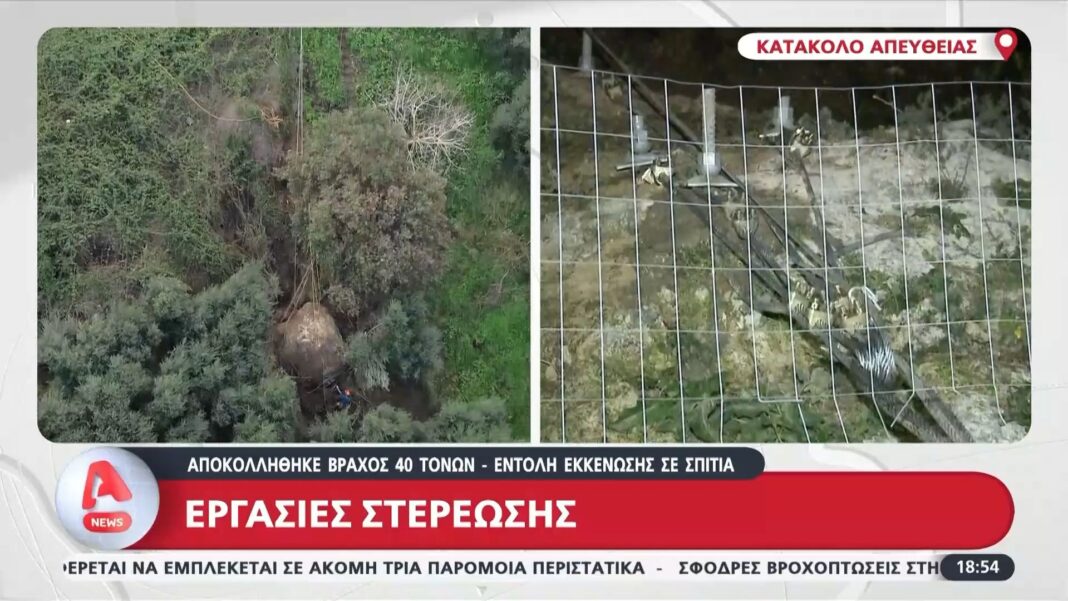 Στο Κατάκολο, μια σοβαρή κατάσταση προκλήθηκε από την αποκόλληση βράχου βάρους 40 τόνων, ο οποίος έπεσε σε κατοικημένη περιοχή. Οι αρχές έχουν προχωρήσει σε εκκένωση των γύρω σπιτιών για την ασφάλεια των κατοίκων και έχουν ξεκινήσει άμεσα εργασίες στερέωσης της περιοχής.