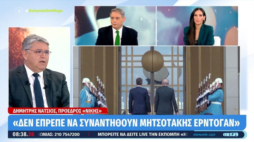 Ο Δημήτρης Νάτσιος, πρόεδρος της ΝΙΚΗΣ, εξέφρασε τις απόψεις του σχετικά με τη συνάντηση του Έλληνα Πρωθυπουργού με τον Τούρκο Πρόεδρο. Υποστήριξε ότι η συνάντηση αυτή δεν θα έπρεπε να είχε πραγματοποιηθεί, αναφέροντας τους κινδύνους που ενδέχεται να προκύψουν από τέτοιες επαφές.