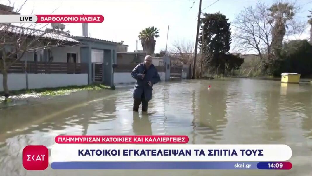 Σοβαρές πλημμύρες πλήττουν την περιοχή του Βαρθολομιού στην Ηλεία, προκαλώντας εκτεταμένες ζημιές σε κατοικίες και καλλιέργειες. Πολλοί κάτοικοι αναγκάστηκαν να εγκαταλείψουν τα σπίτια τους, ενώ οι αρχές βρίσκονται σε επιφυλακή για την αντιμετώπιση της κρίσιμης κατάστασης.