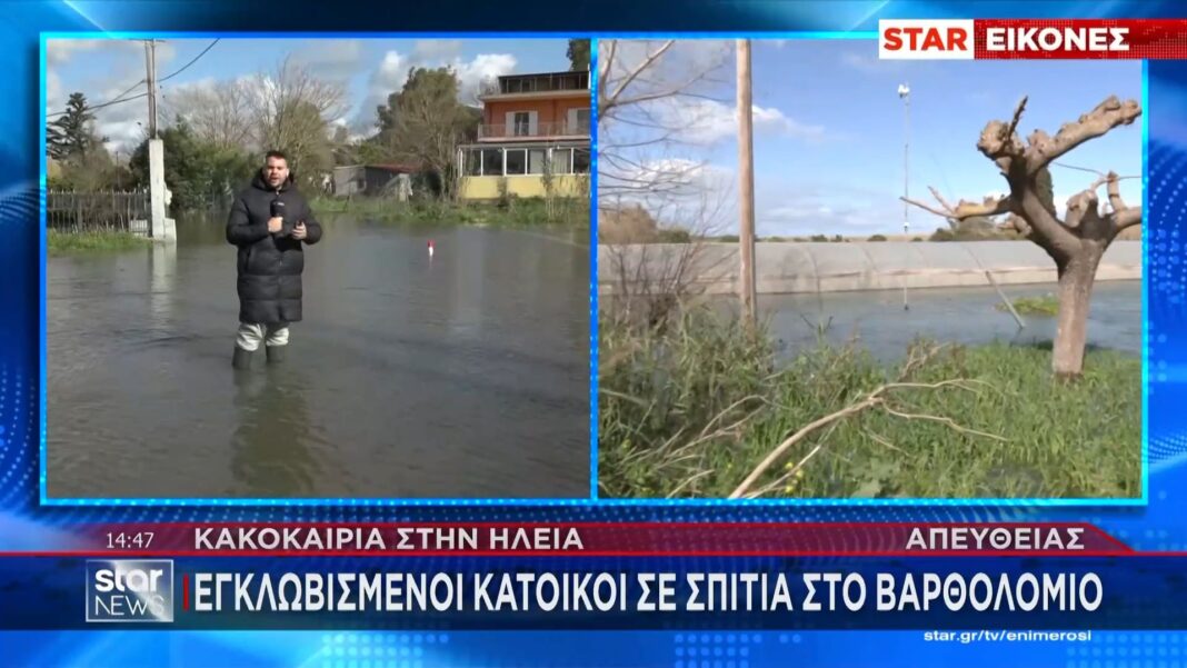 Η κατάσταση στην Ηλεία είναι δραματική, καθώς οι έντονες βροχοπτώσεις έχουν προκαλέσει πλημμύρες που φτάνουν μέχρι το γόνατο. Πολλοί κάτοικοι στο Βαρθολομιό βρίσκονται εγκλωβισμένοι στα σπίτια τους, με τις αρχές να καταβάλλουν προσπάθειες για την απομάκρυνσή τους.