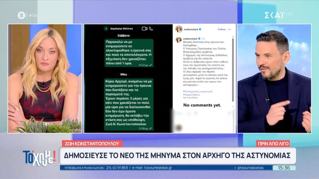 Η Ζωή Κωνσταντοπούλου μέσω ανάρτησής της στο Instagram απευθύνθηκε στον αρχηγό της αστυνομίας, εκφράζοντας την απογοήτευσή της για την έλλειψη απάντησης στα αιτήματά της. Στην ανάρτηση, τονίζει τη σημασία της διαφάνειας και της υπευθυνότητας από τις αρχές, υπογραμμίζοντας τη δέσμευσή της για την προάσπιση των πολιτικών δικαιωμάτων.