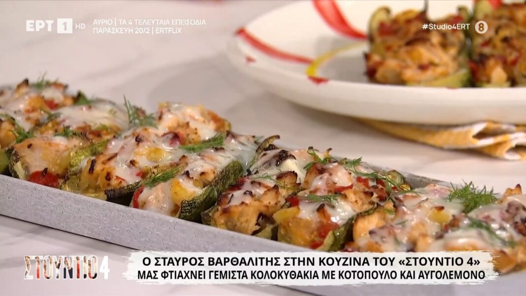 Ο Σταύρος Βαρθαλίτης παρουσιάζει μια παραδοσιακή συνταγή γεμιστών κολοκυθιών, συνδυάζοντας φρέσκα υλικά με κοτόπουλο και αβγολέμονο. Τα κολοκυθάκια γεμίζονται με φιλέτα στήθους κοτόπουλου, ελιές και αρωματικά, προσφέροντας μια γευστική εμπειρία που δεν πρέπει να χάσετε.