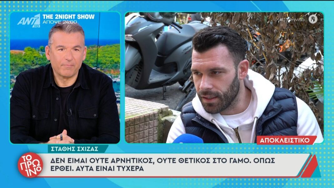 Ο Στέφανος Σχίζας εκφράζει την αβέβαιη στάση του σχετικά με τον γάμο, δηλώνοντας ότι δεν είναι ούτε αρνητικός ούτε θετικός. Επισημαίνει πως η προσέγγισή του είναι πιο τυχαία και εξαρτάται από τις συνθήκες που θα προκύψουν στη ζωή του.