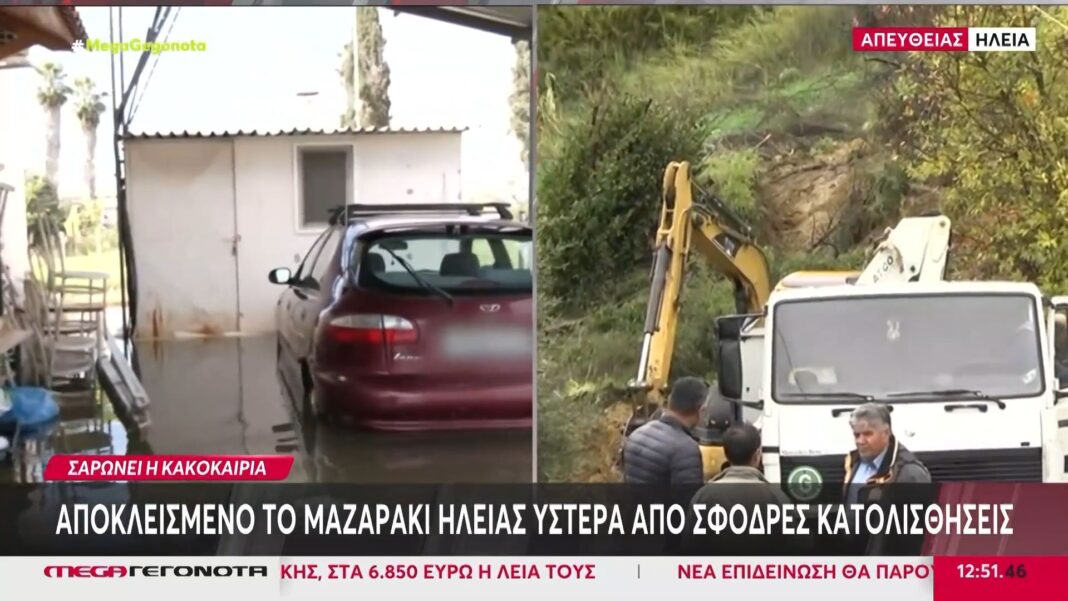 Κακοκαιρία: Αποκλεισμένο το Μαζαράκι Ηλείας από κατολίσθηση – Κλειστοί και οι δύο δρόμοι του χωριού