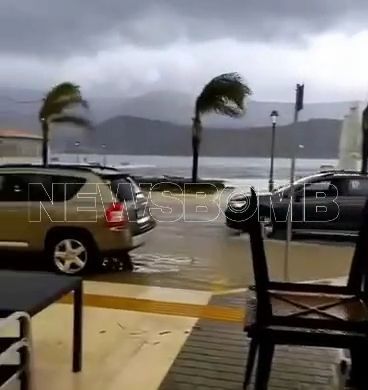 Αργοστόλι: Σε εξέλιξη ισχυρή κακοκαιρία – Πλημμύρισε η παραλιακή Αντώνη Τρίτση