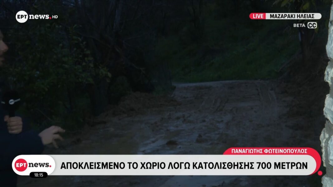 Ένα χωριό στην Ηλεία έχει αποκλειστεί λόγω μιας σοβαρής κατολίσθησης που εκτείνεται σε μήκος 700 μέτρων. Οι αρχές έχουν κινητοποιηθεί για να αξιολογήσουν την κατάσταση και να διασφαλίσουν την ασφάλεια των κατοίκων, οι οποίοι παραμένουν αποκομμένοι από τις γύρω περιοχές.