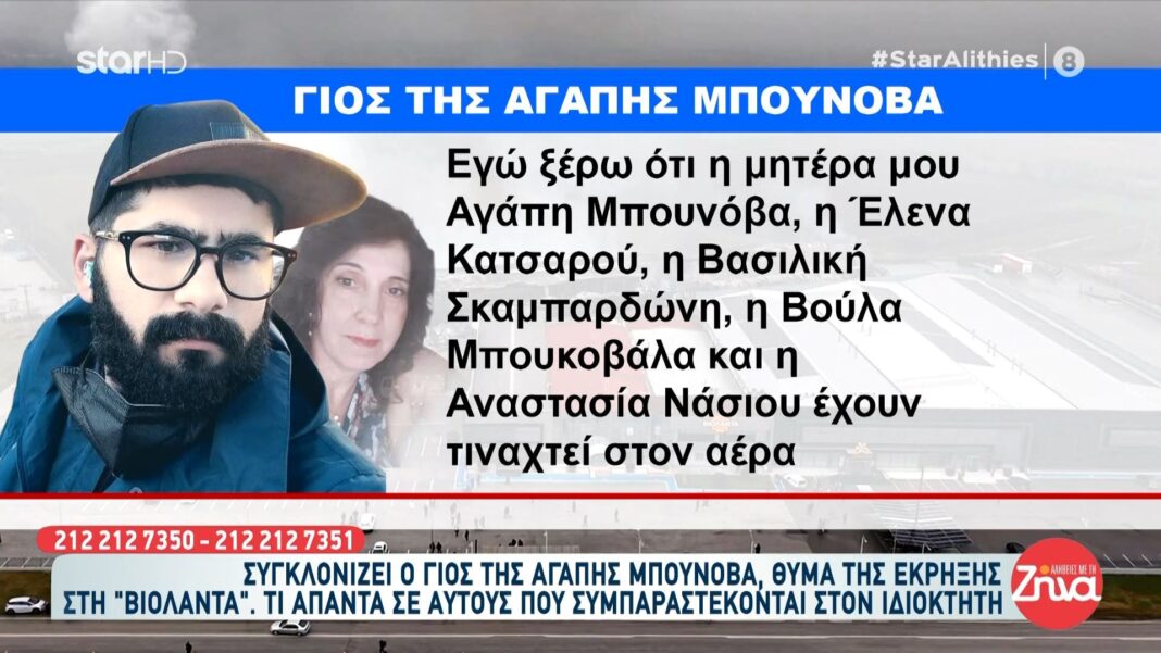 Ο γιος ενός από τα θύματα της πρόσφατης έκρηξης στη «Βιολάντα» εκφράζει τη βαθιά του θλίψη και την οργή του για την τραγωδία που έπληξε την οικογένειά του. Σε δηλώσεις του, αναφέρεται στην απώλεια του πατέρα του και στην αδυναμία του να κατανοήσει την υποστήριξη που εκφράζεται προς τον ιδιοκτήτη της επιχείρησης.