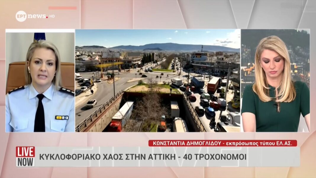 Σε κατάσταση έκτακτης ανάγκης βρίσκεται η Αττική, καθώς οι κυριότεροι δρόμοι έχουν πλημμυρίσει από την πυκνή κυκλοφορία και τα ατυχήματα. Η εκπρόσωπος της Αστυνομίας, Κωνσταντία Δημογλίδου, παρέχει πληροφορίες σχετικά με τις αιτίες του χάους και τις προσπάθειες που καταβάλλονται για την αποκατάσταση της κυκλοφορίας.