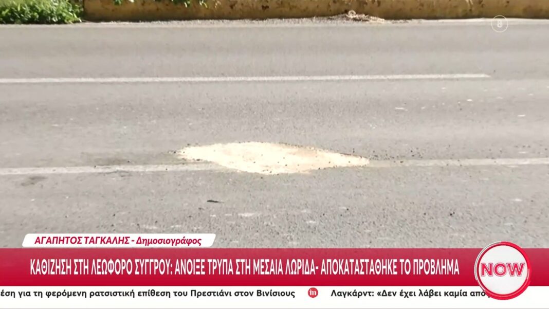 Καθίζηση στη Λεωφόρο Συγγρού – Άνοιξε τρύπα στη μεσαία λωρίδα