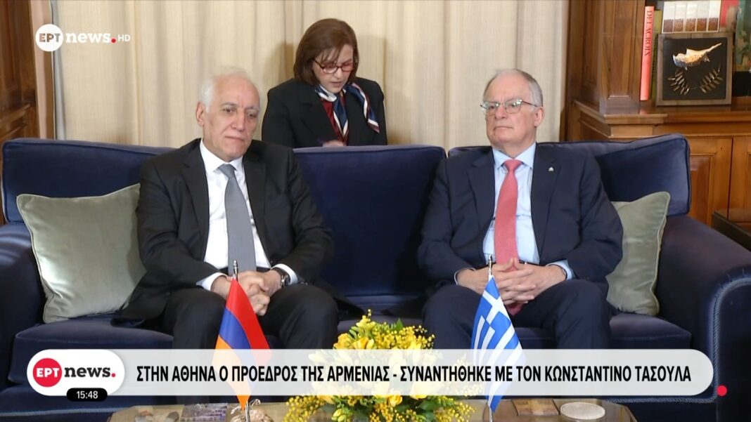Ο πρόεδρος της Αρμενίας επισκέφθηκε την Αθήνα, όπου πραγματοποίησε συνάντηση με τον πρόεδρο της Βουλής, Κωνσταντίνο Τασούλα. Οι δύο ηγέτες συζήτησαν θέματα που αφορούν τη διμερή συνεργασία και τις προκλήσεις που αντιμετωπίζουν οι χώρες τους στην περιοχή.