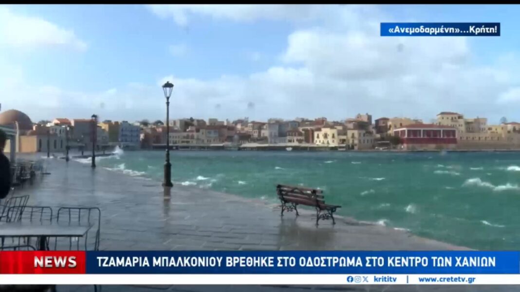 Θυελλώδεις άνεμοι σαρώνουν την Κρήτη, προκαλώντας σοβαρά προβλήματα, κυρίως στα Χανιά. Οι ριπές ανέμων ξεπέρασαν τα 9 Μποφόρ, με αποτέλεσμα τμήματα μπαλκονιών να αποκολληθούν και να βρεθούν στο οδόστρωμα, θέτοντας σε κίνδυνο την ασφάλεια των πολιτών.