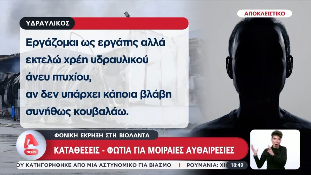 Κατάθεση – φωτιά εργαζόμενου στην Βιολάντα: «Εκτελώ χρέη υδραυλικού άνευ πτυχίου!»