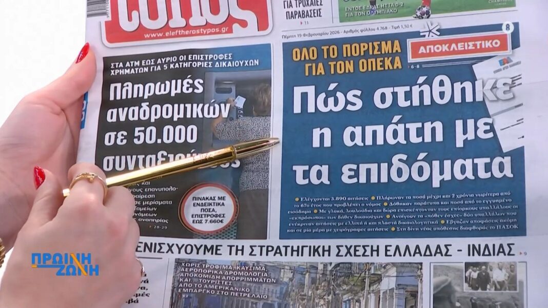 Πρωτοσέλιδα εφημερίδων: Τι γράφουν σήμερα Πέμπτη 19 Φεβρουαρίου 2026