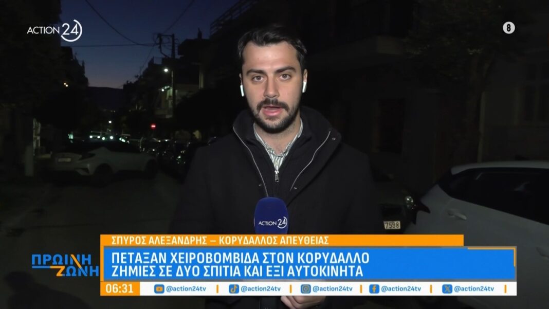 Στο Κορυδαλλό, σημειώθηκε σοβαρό περιστατικό με ρίψη χειροβομβίδας, προκαλώντας εκτεταμένες ζημιές. Δύο σπίτια και έξι αυτοκίνητα υπέστησαν βλάβες, ενώ οι κάτοικοι της περιοχής ανησυχούν για την ασφάλεια τους.