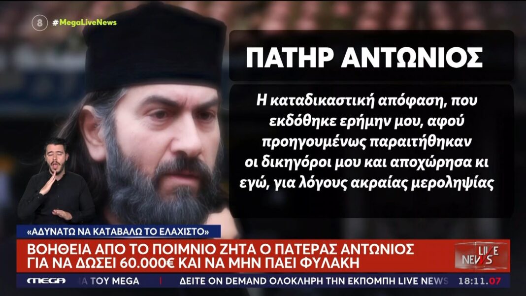 Ο πάτερ Αντώνιος ζητά βοήθεια από το ποιμνίο για να μην πάει φυλακή!