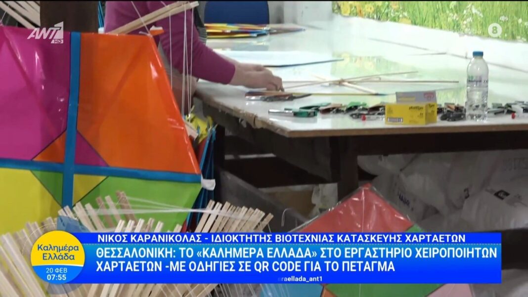 Ο Νίκος Καρανικόλας, ιδιοκτήτης μιας παραδοσιακής βιοτεχνίας κατασκευής χαρταετών στη Θεσσαλονίκη, μοιράζεται την τέχνη και την παράδοση πίσω από αυτό το αγαπημένο χόμπι. Στο εργαστήριο του, οι επισκέπτες έχουν την ευκαιρία να παρακολουθήσουν τη διαδικασία δημιουργίας χαρταετών, από την επιλογή των υλικών μέχρι την τελική συναρμολόγηση.