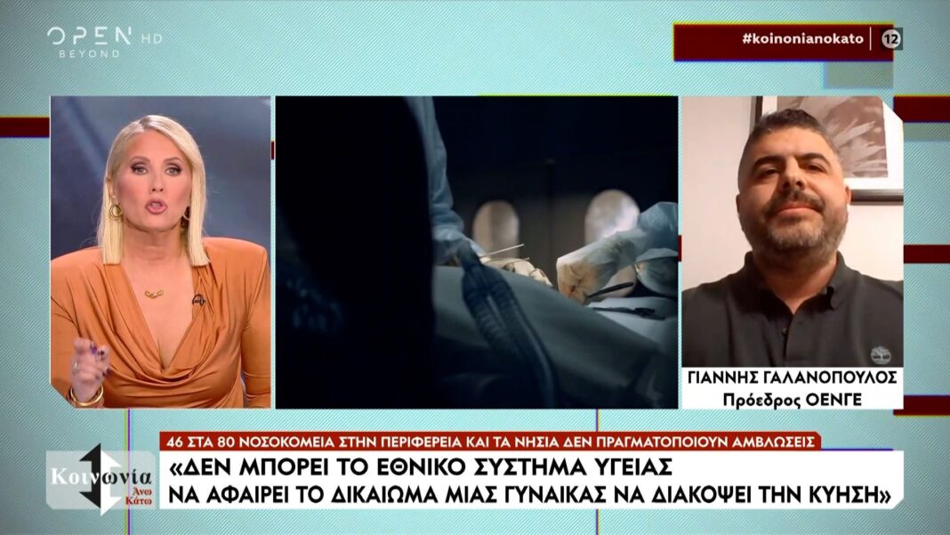 Στην εκπομπή συμμετείχαν η Ματίνα Παγώνη και ο Γιάννης Γαλανόπουλος, πρόεδρος της ΟΕΝΓΕ, οι οποίοι ανέλυσαν τις επιπτώσεις αυτής της πρακτικής και τη θέση των ιατρών απέναντι σε τέτοιες περιπτώσεις. Η συζήτηση έφερε στο φως τις ηθικές και νομικές προεκτάσεις του ζητήματος, τονίζοντας την ανάγκη για αλλαγές στη νομοθεσία και την ιατρική πρακτική.