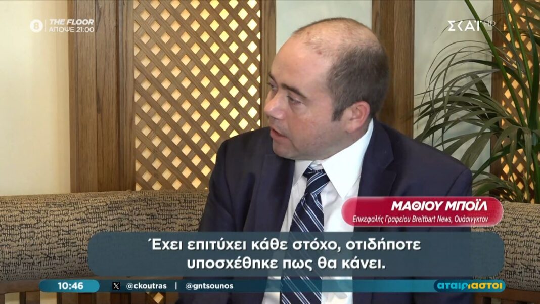 Ο Matthew Boyle αναλύει την επιρροή του Donald Trump στις αμερικανο-ελληνικές σχέσεις και τις στρατηγικές συνεργασίες, δίνοντας έμφαση στον ρόλο της Κίμπερλι Γκιλφόιλ.