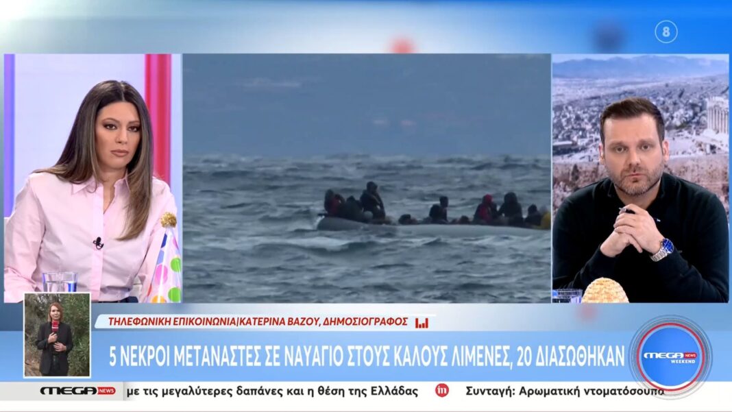 Τραγικό ναυάγιο σημειώθηκε στους Καλούς Λιμένες της Κρήτης, με πέντε μετανάστες να χάνουν τη ζωή τους. Σύμφωνα με τις αρχές, 20 άτομα διασώθηκαν, ενώ 25 παραμένουν αγνοούμενοι, με τις έρευνες να συνεχίζονται.