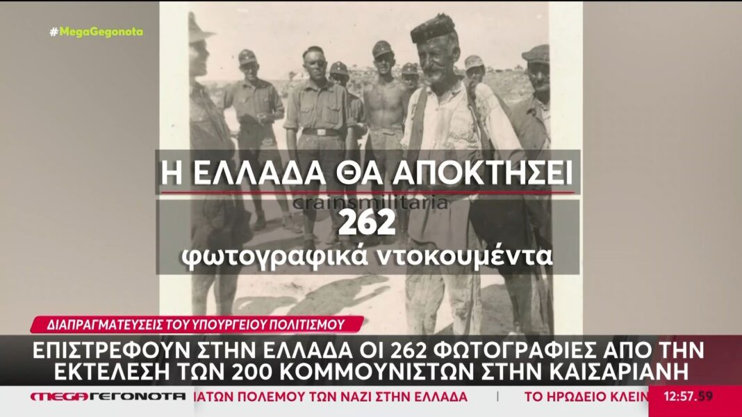 Επιστρέφουν στην Ελλάδα 262 φωτογραφίες που απεικονίζουν την εκτέλεση 200 κομμουνιστών στην Καισαριανή, γεγονός που καταγράφει μια σημαντική ιστορική στιγμή. Η επαναπατρισμός των φωτογραφιών προήλθε από συμφωνία μεταξύ του Υπουργείου Πολιτισμού και ενός Βέλγου πωλητή, ενισχύοντας την πολιτιστική κληρονομιά της χώρας.