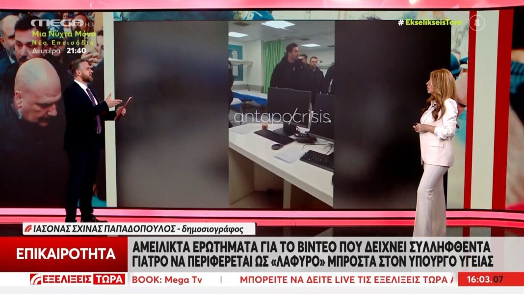 Ένα σοβαρό περιστατικό έχει έρθει στο φως, καθώς γιατρός που έχει συλληφθεί σε νοσοκομείο της Νίκαιας φαίνεται να περιφέρεται μπροστά στον Υπουργό Υγείας, Άδωνι Γεωργιάδη. Οι εικόνες αυτές έχουν προκαλέσει έντονες αντιδράσεις και προβληματισμό σχετικά με την κατάσταση του ιατρικού συστήματος και την ακεραιότητα των επαγγελματιών υγείας.