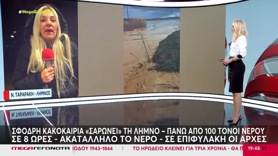 Η Λήμνος πλήττεται σφοδρά από κακοκαιρία, με 140 τόνους νερού να έχουν καταγραφεί σε σύντομο χρονικό διάστημα. Οι ισχυρές βροχές έχουν προκαλέσει σοβαρές ζημιές σε πολλές κατοικίες, με κάποιες από αυτές να είναι ακατοίκητες λόγω των πλημμυρών.