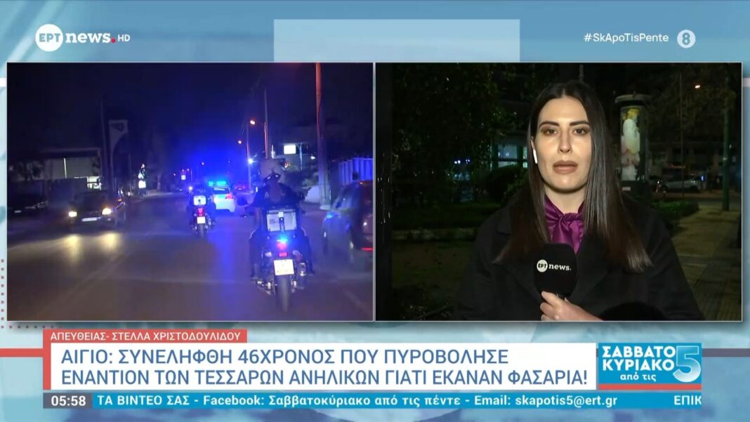 Στην Αίγιο, ένα σοκαριστικό περιστατικό σημειώθηκε όταν 46χρονος άνδρας πυροβόλησε εναντίον τεσσάρων ανηλίκων, οι οποίοι προκαλούσαν φασαρία. Η αστυνομία ανταποκρίθηκε άμεσα και προχώρησε στη σύλληψη του δράστη, ο οποίος φέρεται να αιτιολόγησε την πράξη του λόγω της ενόχλησης που του προκαλούσαν οι νεαροί.