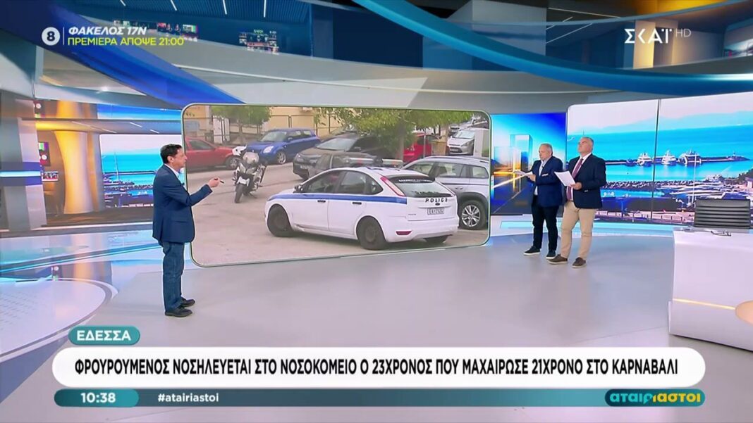 Στο νοσοκομείο νοσηλεύεται φρουρούμενος ο 23χρονος, ο οποίος φέρεται να μαχαίρωσε έναν 21χρονο κατά τη διάρκεια του καρναβαλιού στην Έδεσσα. Το περιστατικό σημειώθηκε τη νύχτα του Σαββάτου και προκάλεσε αναστάτωση στην τοπική κοινωνία.