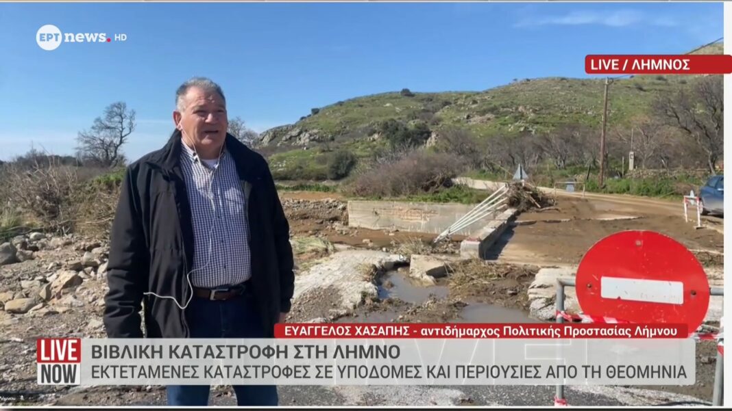 Ο Ευάγγελος Χασάπης, αντιδήμαρχος Πολιτικής Προστασίας στη Λήμνο, παρέχει ενημέρωση σχετικά με τις πρόσφατες καταστροφές που υπέστη το νησί. Σε συνέντευξή του, αναλύει την κατάσταση και τις προσπάθειες αποκατάστασης που καταβάλλονται από τις τοπικές αρχές.