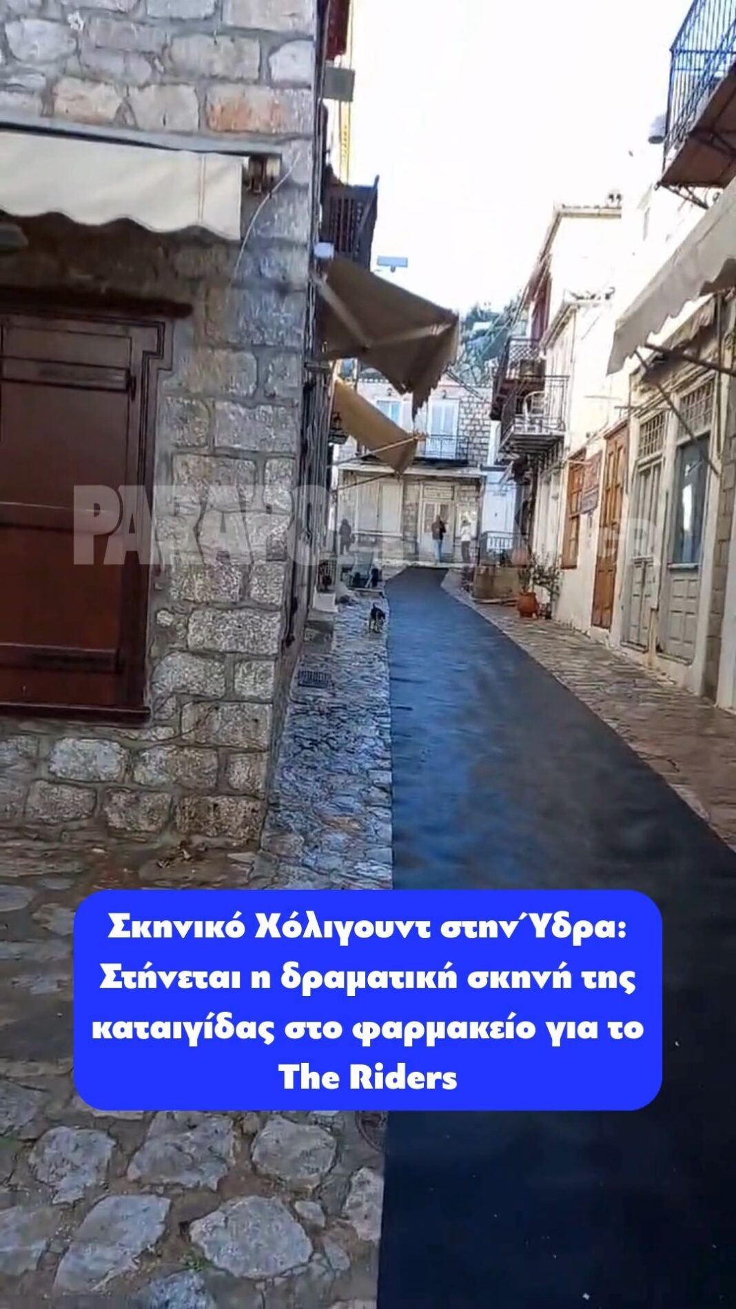 Σκηνικό Χόλιγουντ στην Ύδρα: Στήνεται η δραματική σκηνή της καταιγίδας στο φαρμακείο για το The Riders – Πλαστικός τάπητας, αντλίες και τεχνητή βροχή