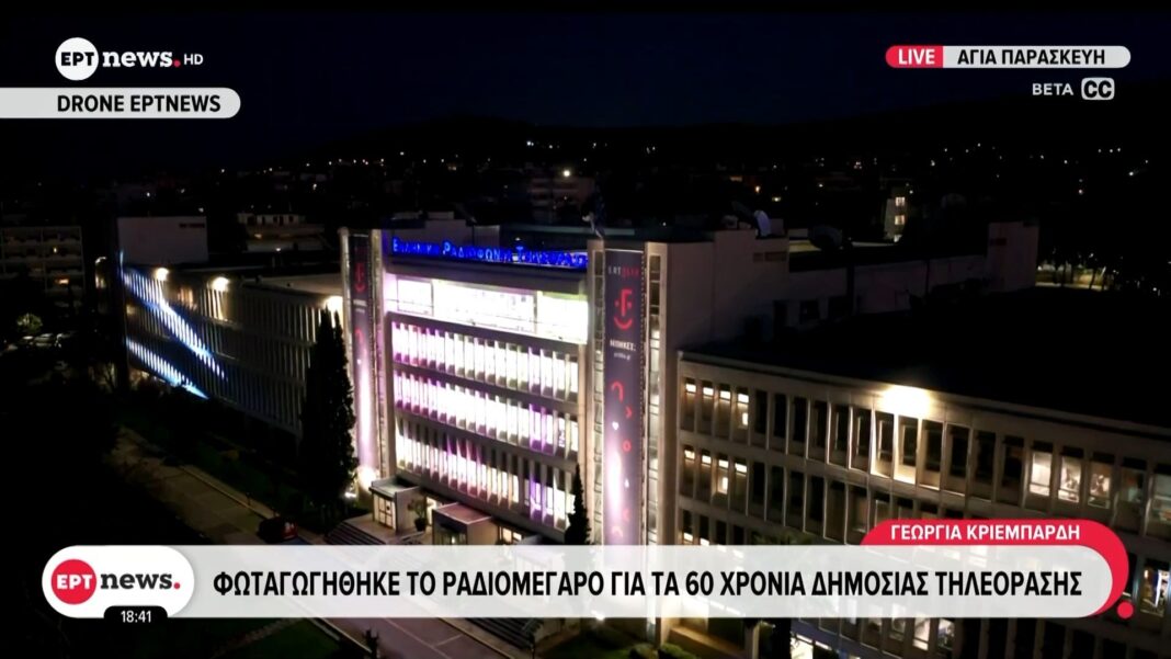 Φωταγωγήθηκε το Ραδιομέγαρο στην Αγία Παρασκευή, γιορτάζοντας τα 60 χρόνια από την ίδρυση της δημόσιας τηλεόρασης στην Ελλάδα. Η εκδήλωση περιλάμβανε ειδικές δράσεις και συγκινητικές ομιλίες, αναδεικνύοντας τη σημασία της δημόσιας ενημέρωσης και της πολιτιστικής κληρονομιάς.