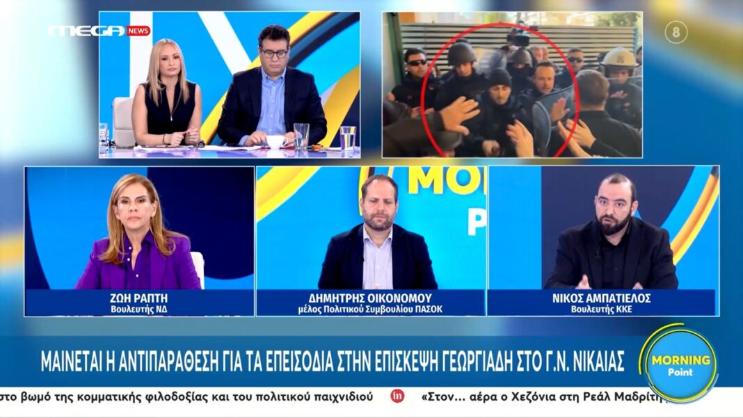 Η Ζωή Ράπτη, ο Δημήτρης Οικονόμου και ο Νίκος Αμπατιέλος συζητούν τις πρόσφατες εξελίξεις στη Νίκαια, εστιάζοντας στην εμφάνιση του Άδωνι Γεωργιάδη. Ο Αμπατιέλος καταγγέλλει ότι το γεγονός αποτελεί στημένο “σόου”, υπογραμμίζοντας την ανάγκη για διαφάνεια και ειλικρίνεια στην πολιτική σκηνή.