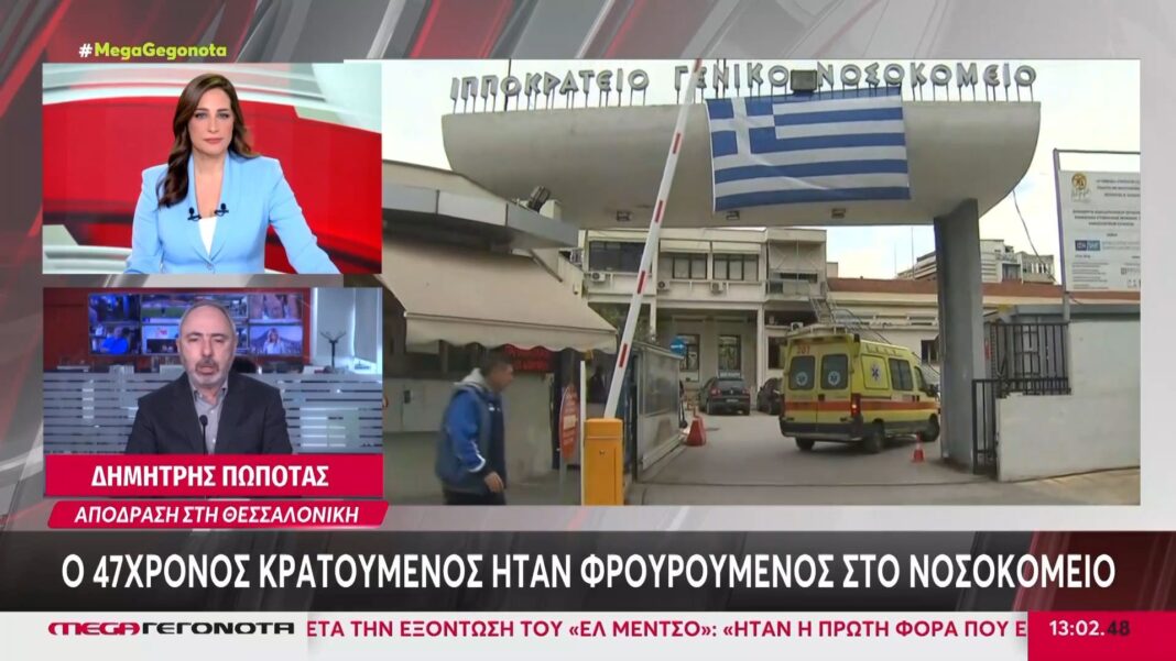 Ενας 47χρονος κρατούμενος, ο οποίος νοσηλευόταν στη ΜΕΘ του Ιπποκράτειου Νοσοκομείου στη Θεσσαλονίκη, κατάφερε να αποδράσει με εντυπωσιακό τρόπο. Η απόδραση σημειώθηκε σε μια περίοδο που η ασφάλεια στα νοσοκομεία βρίσκεται στο επίκεντρο της προσοχής, καθώς είναι η δεύτερη τέτοια περίπτωση μέσα σε λίγες μέρες.