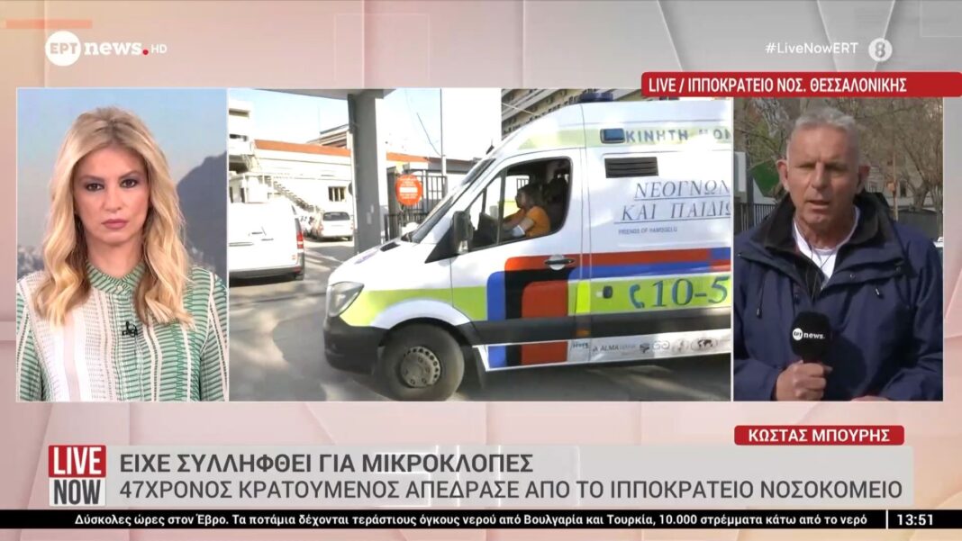 Ο 45χρονος κακοποιός δραπέτευσε από το νοσοκομείο της Θεσσαλονίκης το πρωί της Κυριακής, ενώ βρισκόταν υπό στενή επιτήρηση για καρδιακά προβλήματα.