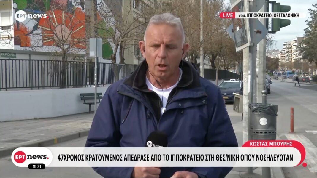 47χρονος κρατούμενος απέδρασε από το Ιπποκράτειο στη Θεσσαλονίκη από όπου νοσηλευόταν