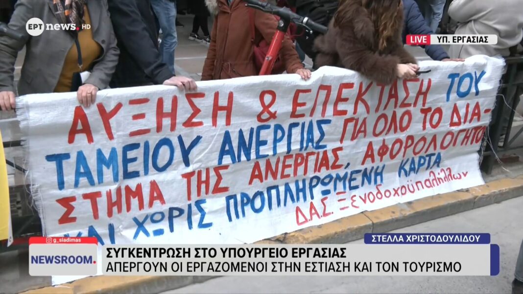 Συγκέντρωση στο Υπουργείο Εργασίας: Απεργούν ο εργαζόμενοι στην εστίαση και τον τουρισμό