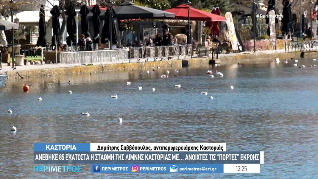 Η στάθμη της λίμνης στην Καστοριά έχει ανέβει σημαντικά ύστερα από τις πρόσφατες βροχοπτώσεις, φτάνοντας σε επίπεδα που δεν παρατηρούνταν εδώ και χρόνια. Οι αρχές της περιοχής άνοιξαν το θυρόφραγμα στο ρέμα Γκιόλη για να αποσυμφορήσουν τη λίμνη, με αποτέλεσμα η στάθμη να ανέβει κατά 85 εκατοστά.