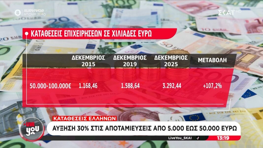 Αύξηση 30% στις αποταμιεύσεις από 5.000 έως 50.000 ευρώ
