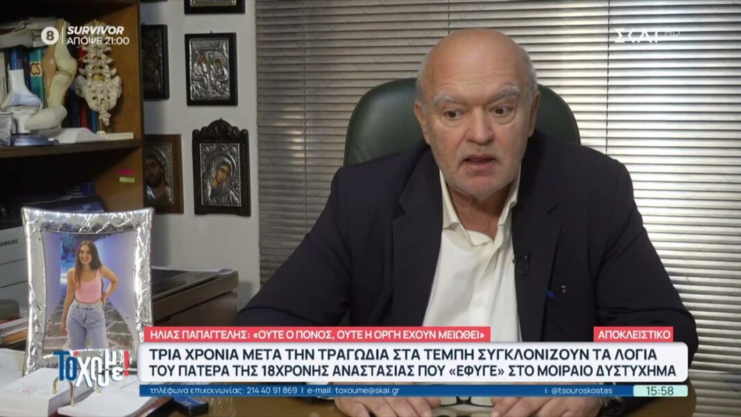 Τρία χρόνια έχουν περάσει από την τραγωδία στα Τέμπη, αλλά η μνήμη της 16χρονης Αναστασίας παραμένει ζωντανή. Ο πατέρας της μιλάει για τον πόνο και την απώλεια που βιώνει καθημερινά, εκφράζοντας τα συναισθήματα των οικογενειών που επηρεάστηκαν από το δυστύχημα.